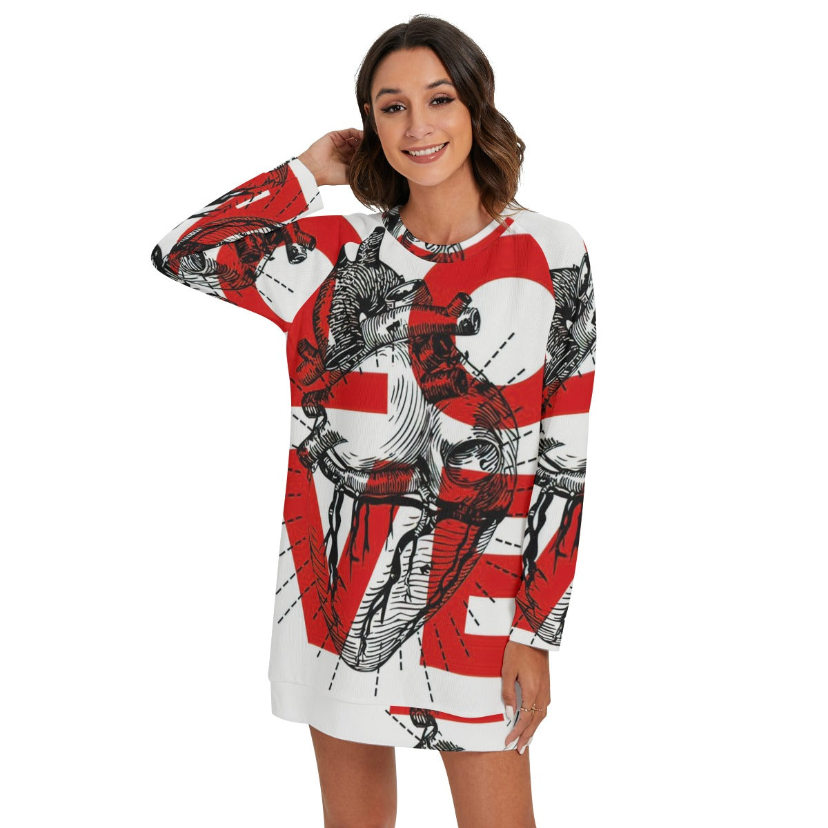 Grafica Women's Love Print Women's Round Neck Raglan Sleeve Sweater